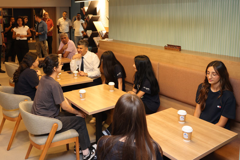 Aynı anda 60 öğrencinin faydalanabileceği kütüphane, 1.500 kitabı barındırıyor. Modern bir “kafe kütüphane” konseptiyle tasarlanan merkezde öğrenciler, kitap okurken ücretsiz ikram edilen çay ve kahvelerini içebiliyor.