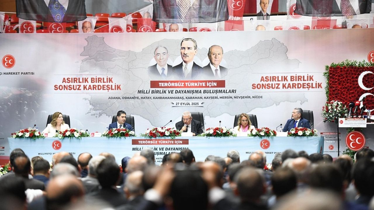 Milliyetçi Hareket Partisi’nin öncülüğünde gerçekleştirilen “Asırlık Birlik, Sonsuz Kardeşlik” temalı “Terörsüz Türkiye İçin Millî Birlik ve Dayanışma Buluşmaları” kapsamında son toplantı, Adana’da yapıldı. Adnan Menderes Kapalı Spor Salonu’nu dolduran partililer ve vatandaşlar, birlik ve beraberlik mesajlarına güçlü destek verdi. Milliyetçi Hareket Partisi Mersin Milletvekili ve MYK Üyesi Dr. Levent Uysal terörsüz Türkiye hedefine emin adımlarla ilerlediklerini kaydederek “Terörsüz Türkiye çağrısı bir olma çağrısıdır.” şeklinde konuştu.