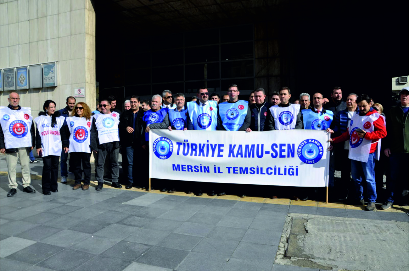 İstikbal Özel Haber/Fatma Aydın- Türkiye Kamu-Sen Mersin İl Başkan Vekili ve Türk Büro Sen Mersin 1 Nolu Şube Başkanı Ozan Giran Mersin Defterdarlığı önünde yaptığı basın açıklamasına şube başkanları ve üyeler katıldı.