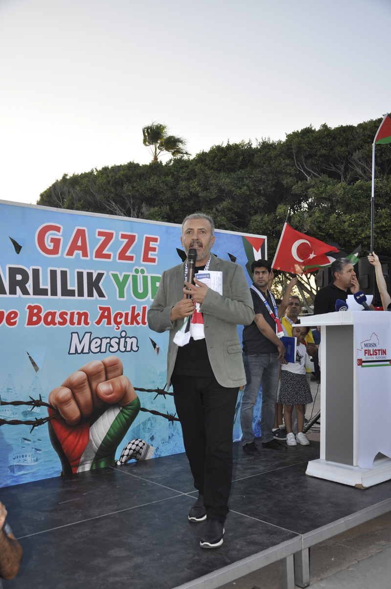 İstikbal Özel Haber Fatma Aydın/ Gazze’nin Sesi olmak, Sumud Filosu’na destek vermek amacıyla 81 ilde yapılan yürüyüş ve basın açıklaması Mersin’de de yapıldı. Mersin İdman Yurdu Meydanı’nda başlayıp, Özgecan Barış Meydanı’nda sona eren yürüyüşe katılım yoğun oldu. Yürüyüş sonrasında yapılan basın açıklamaları öncesinde Kur’an-ı Kerim tilaveti okundu.
