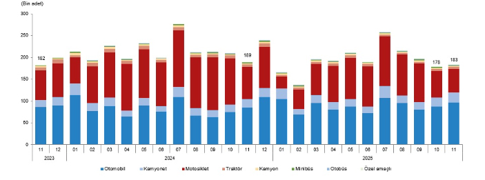 Trafiğe kaydı yapılan taşıt sayısı, Kasım 2023-Kasım 2025