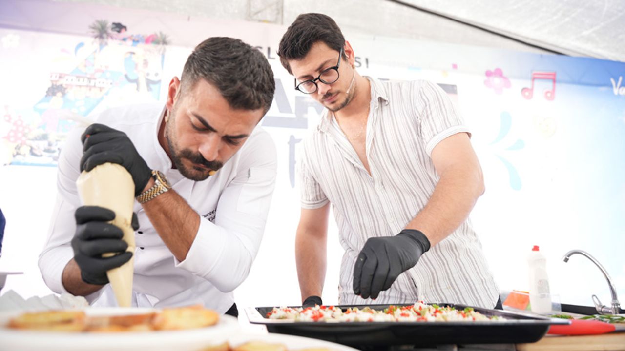 Sahneye birlikte çıkan iki başarılı şef Akın Kızıltaş ve Alican Sabunsoy ise geleneksel tatlara modern bir dokunuş kazandırarak ‘Avokadolu Humuslu Bruschetta’ hazırladı. Festival alanında büyük ilgi gören gösteride, hem yerel malzemelerin önemi hem de gastronomide yenilikçi yaklaşımlar ön plana çıktı. Tarsus’un lezzet mirasına katkıda bulunan Alican Sabunsoy ve Akın Kızıltaş, geleneksel tatları modern dokunuşlarla buluşturarak festival ziyaretçilerine unutulmaz bir gastronomi deneyimi yaşattı.
