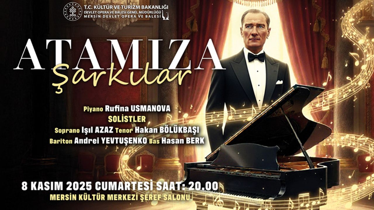 Cumhuriyetimizin kurucusu Gazi Mustafa Kemal Atatürk’ü anmak ve onun aziz hatırasını müzikle yaşatmak amacıyla Mersin Devlet Opera ve Balesi (Mersin DOB), 10 Kasım Atatürk’ü Anma etkinlikleri kapsamında özel bir konser düzenliyor.