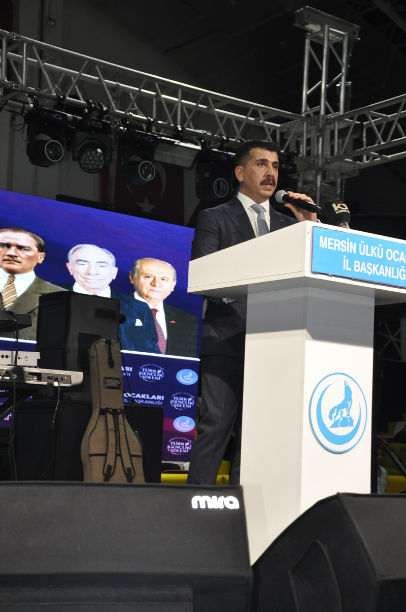 MHP Mersin İl Başkanı Ömer Gürsoy, konuşmasında Ülkü Ocakları’nın bir gençlik hareketi olmasının ötesinde Türk Milletinin vicdanı olduğunu söyledi.
