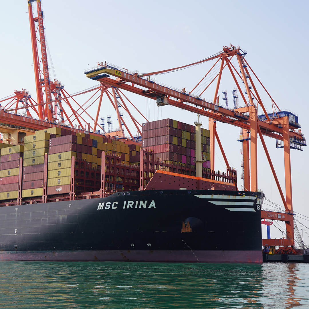 Mersin Uluslararası Limanı (MIP), 7 Kasım 2025 tarihinde, kısa süre önce tamamlanan 880 metre uzunluğundaki East Med Hub 2 (EMH2) Terminali'nde, TEU (yirmi fit eşdeğer birim) kapasitesine göre dünyanın en büyük konteyner gemisi olan MSC IRINA'yı ağırladı.