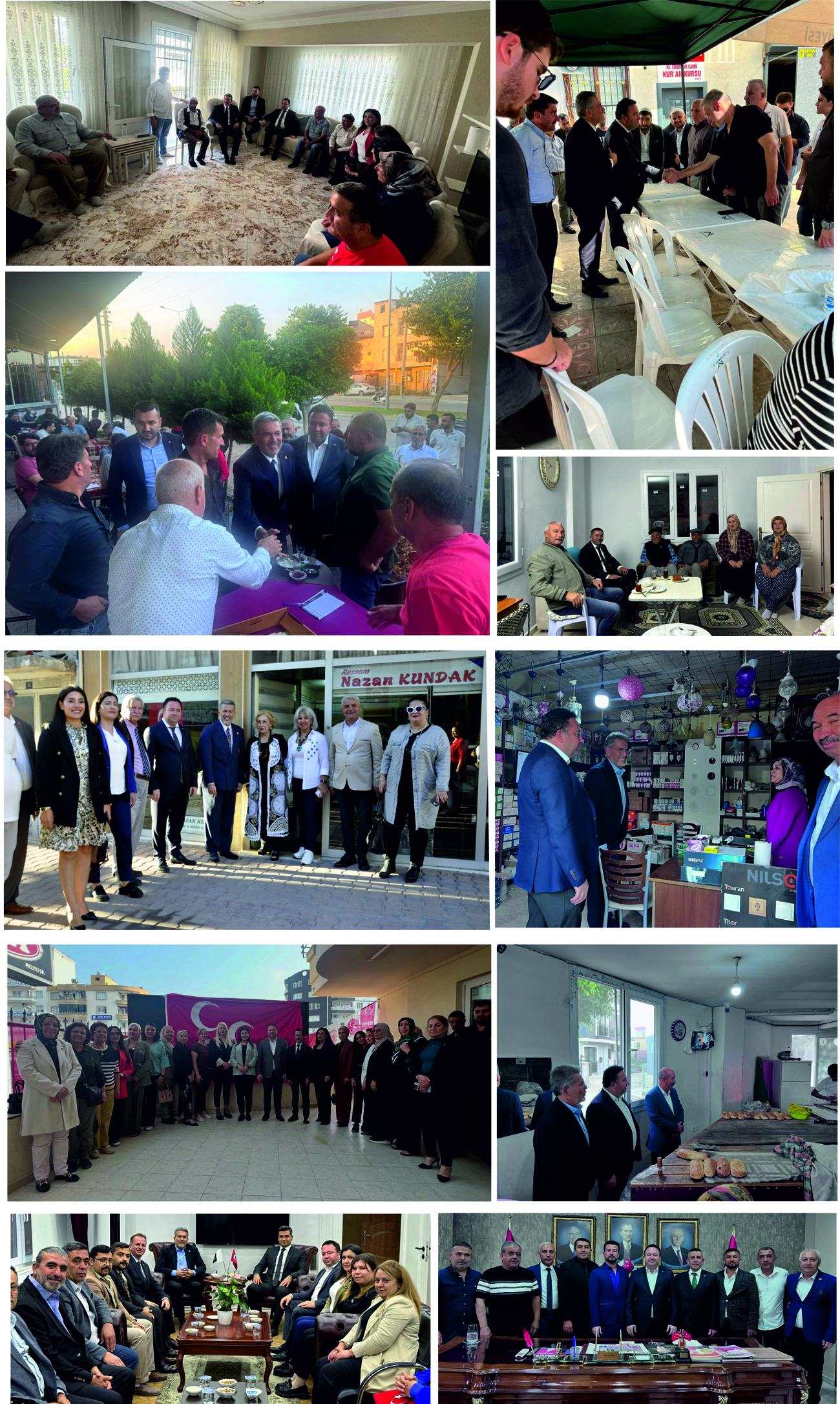 MHP Mersin İl Başkanı Ömer Gürsoy, Milliyetçi Hareket Partisi’ne önceki dönemlerde hizmet etmiş partilileri de gittikleri yerlerde ziyaret ettiklerini, onlarla hoş sohbette bulunduklarını söyledi. Ayrıca sanatçılar ve iş adamları ile esnafları da iş yerlerinde ziyaret ettiklerinin altını çizdi.