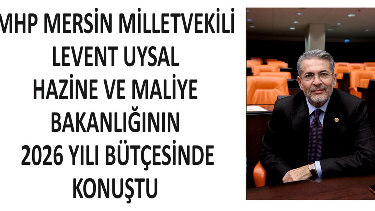 TBMM Plan ve Bütçe Komisyonu’nda Hazine ve Maliye Bakanlığı’nın 2026 yılı bütçe görüşmelerinde konuşan MHP Mersin Milletvekili ve MYK Üyesi Dr. Levent Uysal, Mersin’in ülke ekonomisine yaptığı katkılara dikkat çekerek kent için yeni destek taleplerinde bulundu. Milletvekili Uysal “Mersin’imize yeni finansman ve yatırım teşviklerinin artırılması gerekmektedir. Hazine ve Maliye Bakanımız Mehmet Şimşek Beyefendiye Mersin’imizin taleplerini ilettik.” şeklinde konuştu.