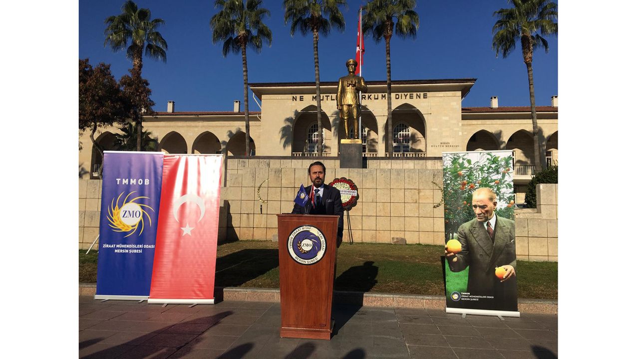 TMMOB Ziraat Mühendisleri Odası Mersin Şube Başkanı Prof. Dr. Okan Özkaya tarımsal öğretimin başlangı olan 10 Ocak gününde Cumhuriyet Alanında Atatürk Anıtına çelenk koydular. Saygı Duruşu ve İstiklal Marşı okunmasının ardından günün anlamı üzerine konuşma yapan Başkan Özkaya, “Tarımsal Öğretimimiz 10 Ocak 1846 yılında İstanbul Ayamama Çiftliğinde kurulan Mektebi Zirai Şahane ile başlamış, 1892 de Halkalı Ziraat Mektebi ile ilerleyen Tarımsal Öğretim, her yılın 10 Ocak tarihinde tüm yurtta törenlerle, etkinliklerle kutlanmaktadır. 1933 yılında tarımsal öğretim faaliyetleri yeni yasa ile Yüksek Ziraat Enstitüsü adı ile sürdürülmüştür. Bu enstitü 1948 yılında çıkarılan yasa ile Ziraat Fakültesi adını alarak Ankara Üniversitesi’ne bağlanmıştır.