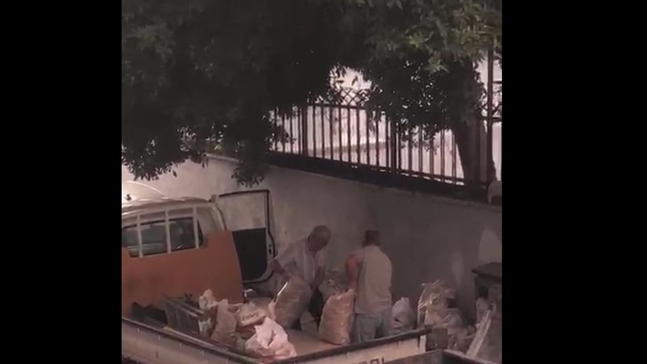 Duyarlı bir vatandaşın cep telefonu ile çektiği görüntülerde, mini bir kamyonet ile söz konusu sokağa giren 2 kişinin, çuvallar dolusu inşaat ve moloz atığını kaldırıma ve sokakta bulunan çöp konteynerinin yanına bıraktıkları görülüyor.