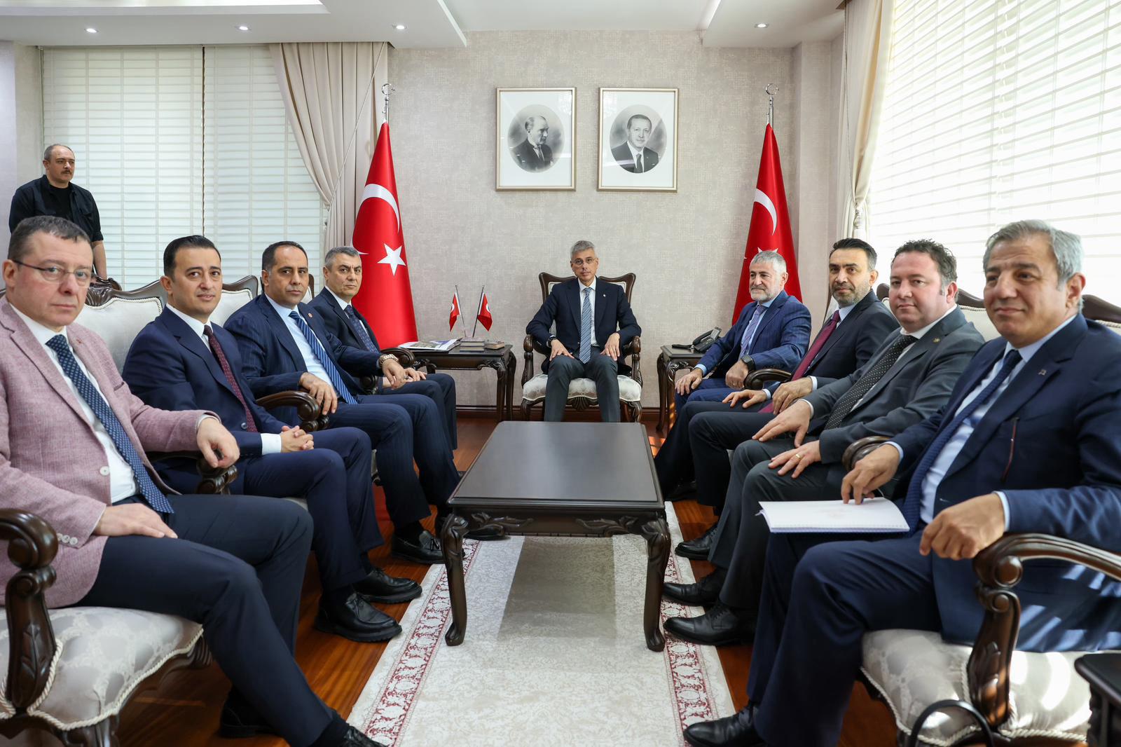 Mersin Valisi Atilla Toros tarafından karşılanan Sağlık Bakanı Prof. Dr. Kemal Memişoğlu’nun, Valilik Şeref Defterini imzalamasının ardından Valilik Makamında gerçekleşen görüşmede çeşitli konularda değerlendirme ve bilgi alışverişinde bulunuldu.