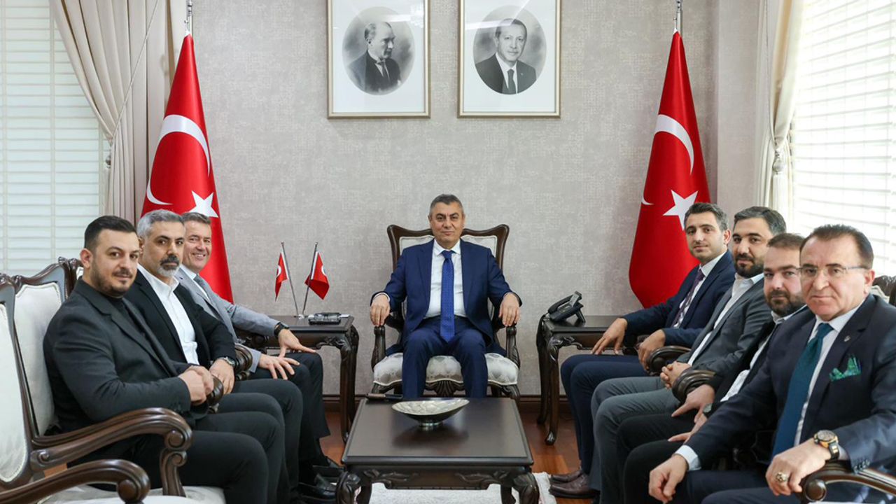 VALİ ATİLLA TOROS, ZİYARETİNE GELEN MTSO YÖNETİM KURULU BAŞKANI HAKAN SEFA ÇAKIR VE BERABERİNDEKİ HEYET İLE GÖRÜŞTÜ
