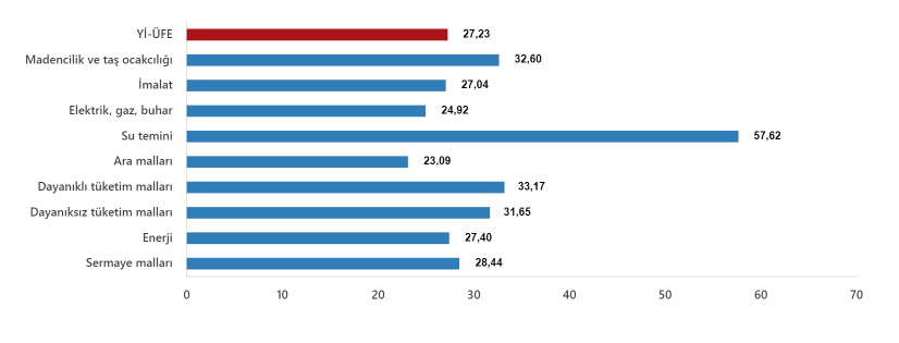 Yurt İçi Üretici Fiyat Endeksi (Yİ-ÜFE) yıllık %27,23 arttı, aylık %0,84 arttı