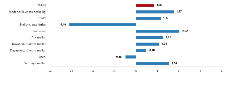Ana sanayi gruplarının aylık değişimleri; ara mallarında %1,27 artış, dayanıklı tüketim mallarında %1,08 artış, dayanıksız tüketim mallarında %0,48 artış, enerjide %0,48 azalış ve sermaye mallarında %1,54 artış olarak gerçekleşti.
