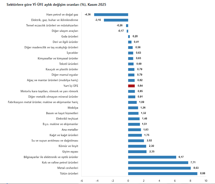 Yİ-ÜFE aylık değişim oranları (%), Kasım 2025